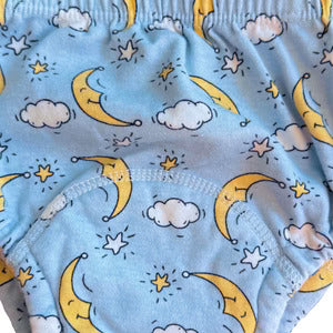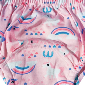 Our inner cotton layer conducts moisture directly to your child's skin for immediate I'm wet! awareness. The middle layer absorbs while preserving feedback. The outer waterproof barrier prevents leaks.