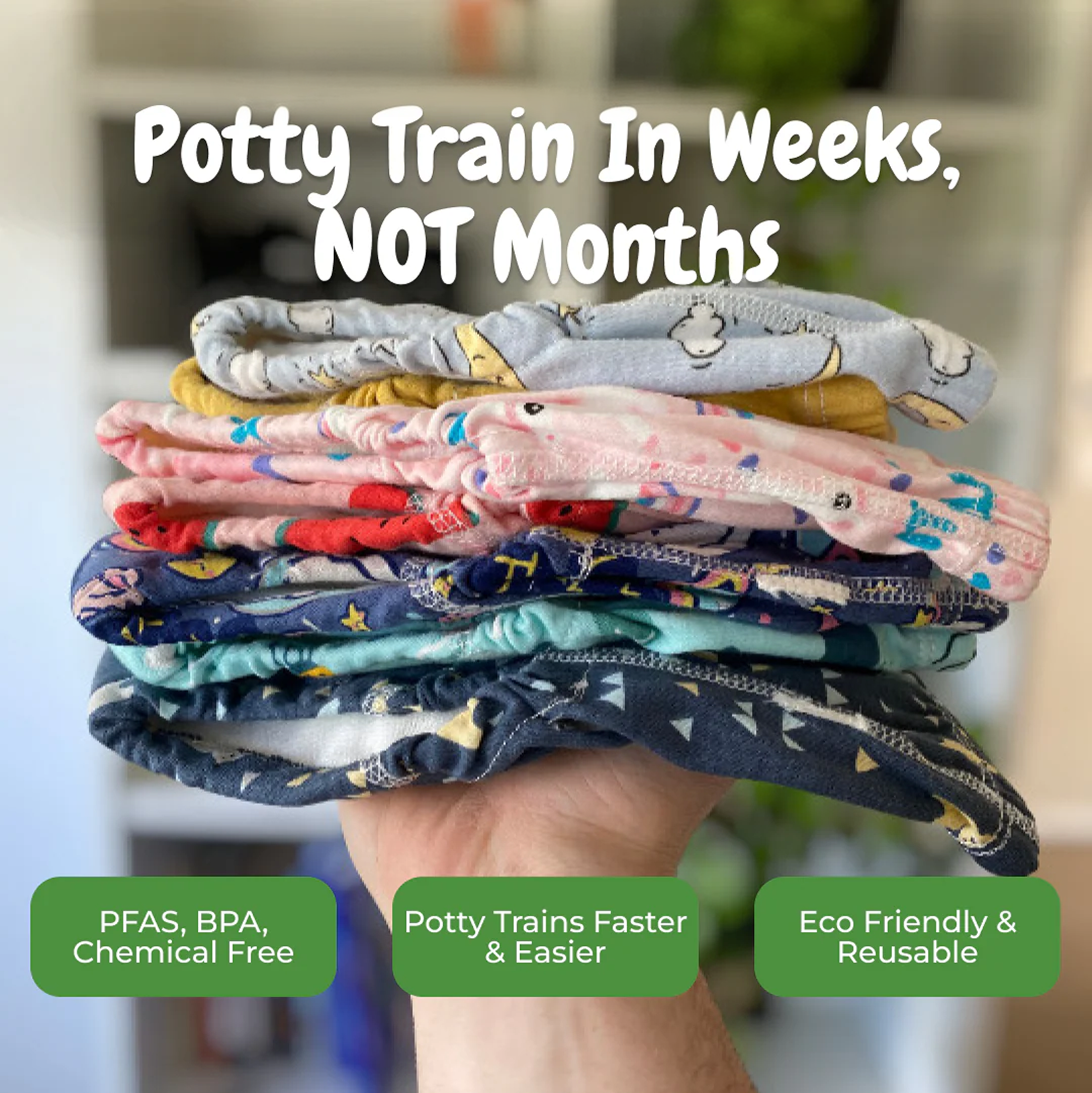 Our pants are reusable and designed to finish potty training faster — saving you money long term.